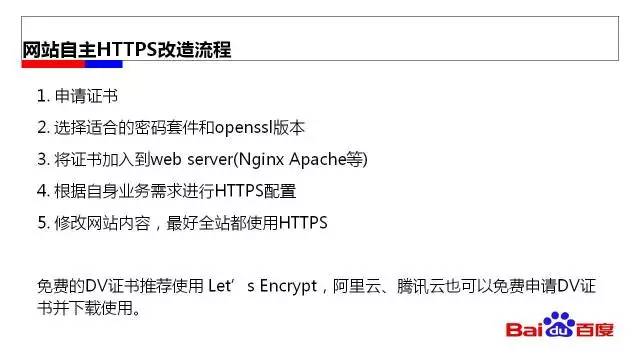 總結(jié)以上兩種方案,自己做HTTPS的改造可以貼合自己的業(yè)務(wù)做定制,比較靈活,問題是對技術(shù)能力要求高,成本和復(fù)雜度也很高,如果網(wǎng)站業(yè)務(wù)比較特殊的可以選擇自己做。