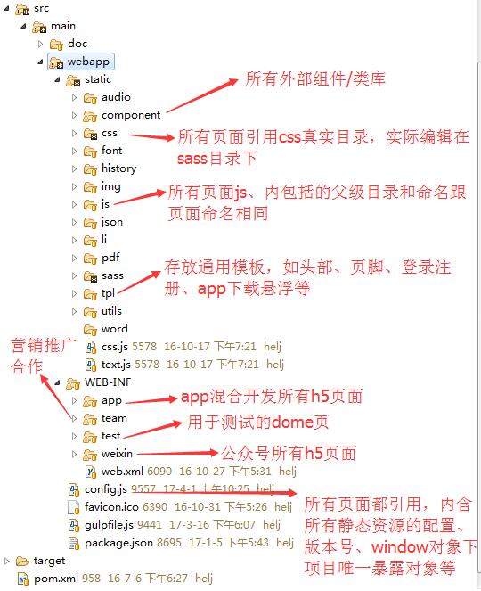 一個項目的目錄結構就像人的骨架一樣重要,對于日漸迭代版本越來越多的前端項目,如果沒有一個好的目錄結構會顯得非常臃腫,難以維護,以下這個截圖是我現在正使用的目錄,也還有需要改進的地方,做一個參考: